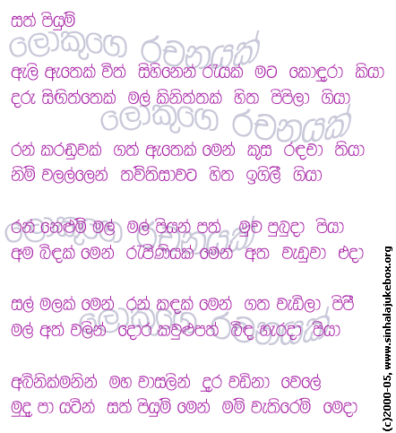 You are hereby invited to submit "Geetha Katha" for possible publication in this page. We reserve the rights to choose what will be presented, yet submitter is responsible for the content and not the page maintainers. We welcome all forms of creative work including but not limited to short stories, jokes, poems, and satire either in Sinhala and/or English.