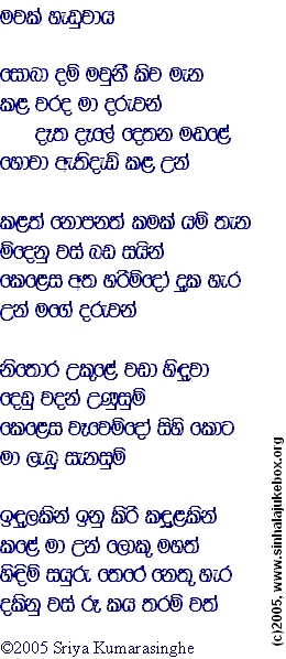 ©2000-2014, Sinhala Jukebox - A Jukebox of Songs from Sri Lanka.