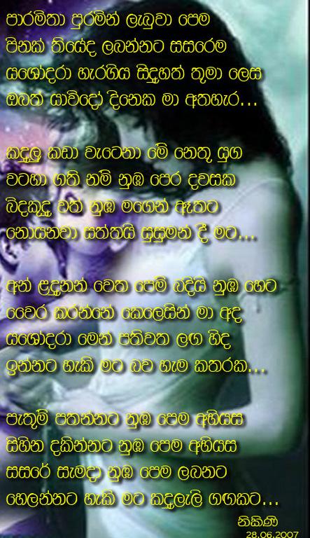 You are hereby invited to submit "Geetha Katha" for possible publication in this page. We reserve the rights to choose what will be presented, yet submitter is responsible for the content and not the page maintainers. We welcome all forms of creative work including but not limited to short stories, jokes, poems, and satire either in Sinhala and/or English.