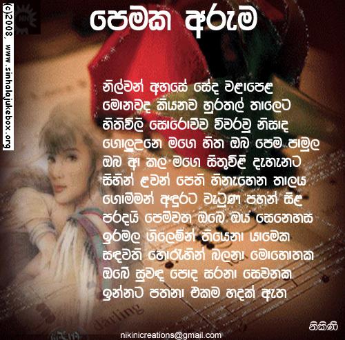 You are hereby invited to submit "Geetha Katha" for possible publication in this page. We reserve the rights to choose what will be presented, yet submitter is responsible for the content and not the page maintainers. We welcome all forms of creative work including but not limited to short stories, jokes, poems, and satire either in Sinhala and/or English.
