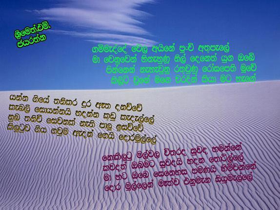 You are hereby invited to submit "Geetha Katha" for possible publication in this page. We reserve the rights to choose what will be presented, yet submitter is responsible for the content and not the page maintainers. We welcome all forms of creative work including but not limited to short stories, jokes, poems, and satire either in Sinhala and/or English.
