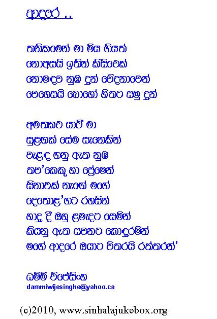 You are hereby invited to submit "Geetha Katha" for possible publication in this page. We reserve the rights to choose what will be presented, yet submitter is responsible for the content and not the page maintainers. We welcome all forms of creative work including but not limited to short stories, jokes, poems, and satire either in Sinhala and/or English.
