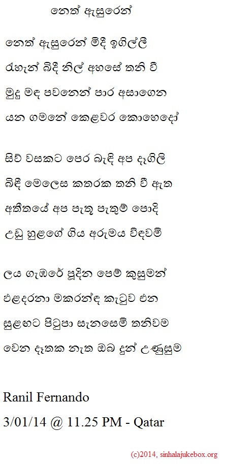 ©2000-2014, Sinhala Jukebox - A Jukebox of Songs from Sri Lanka.